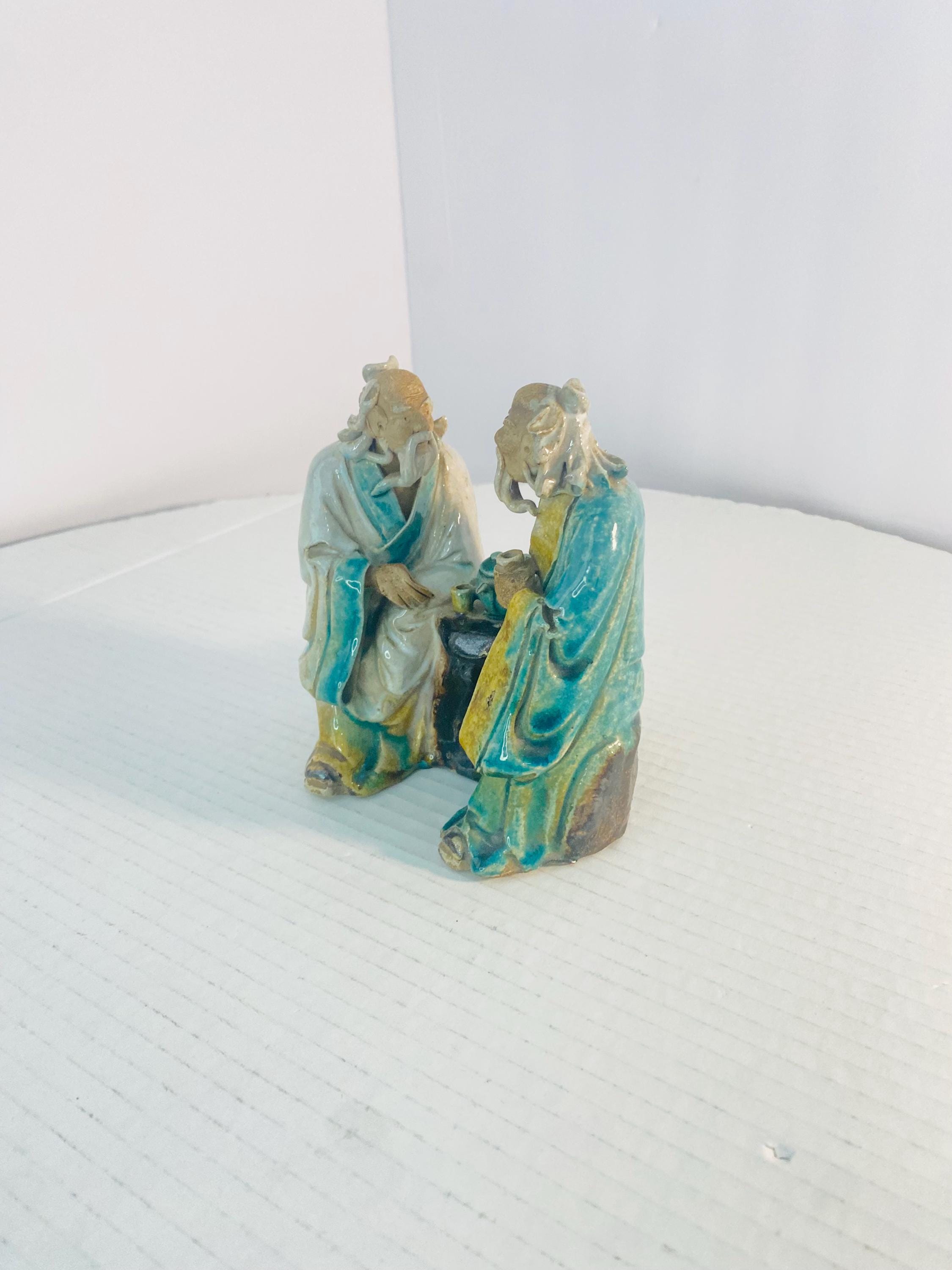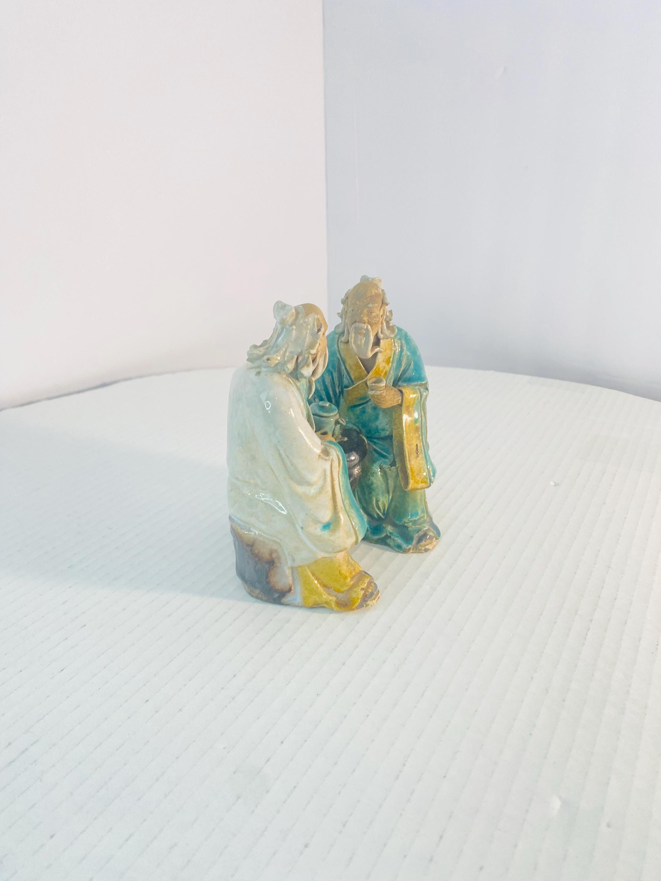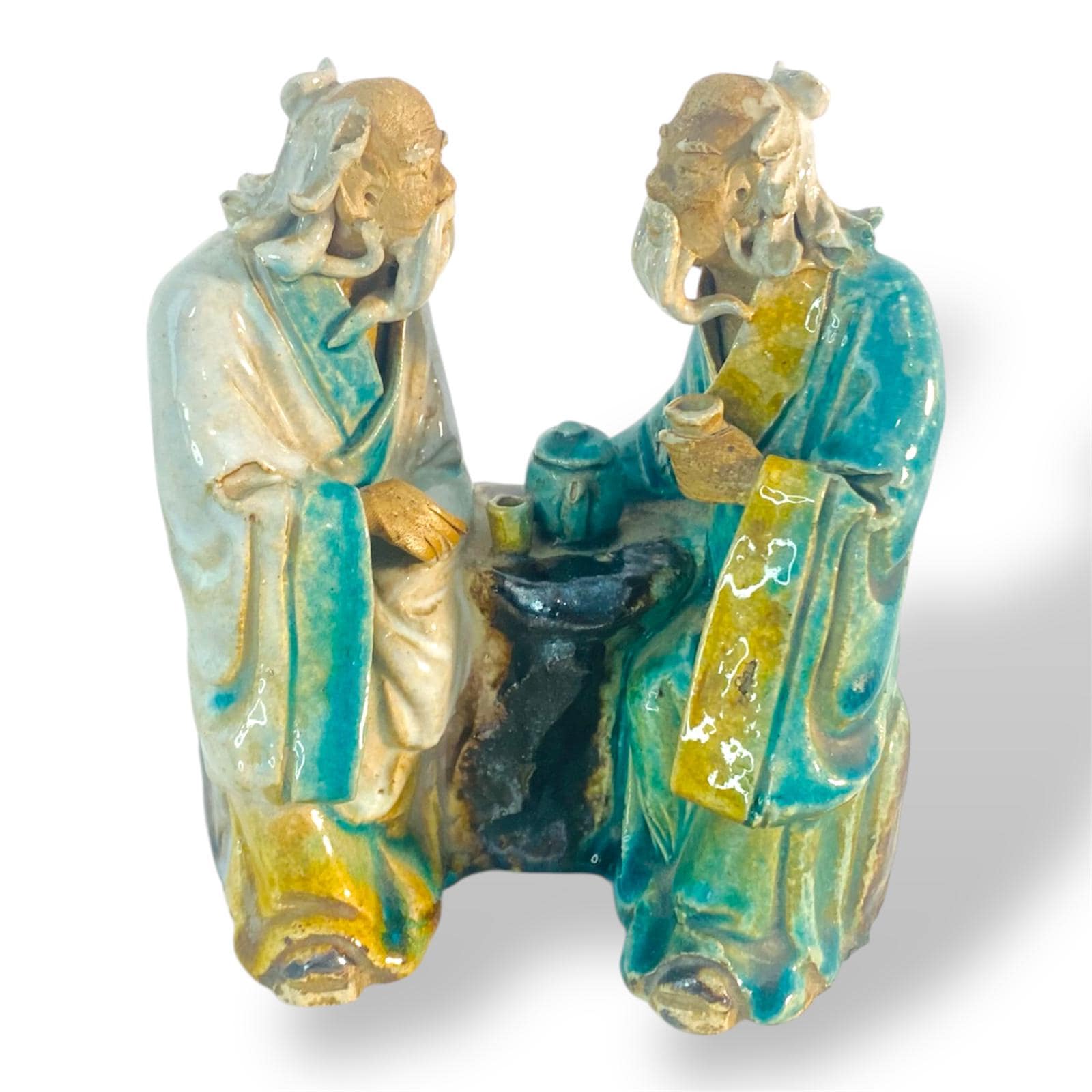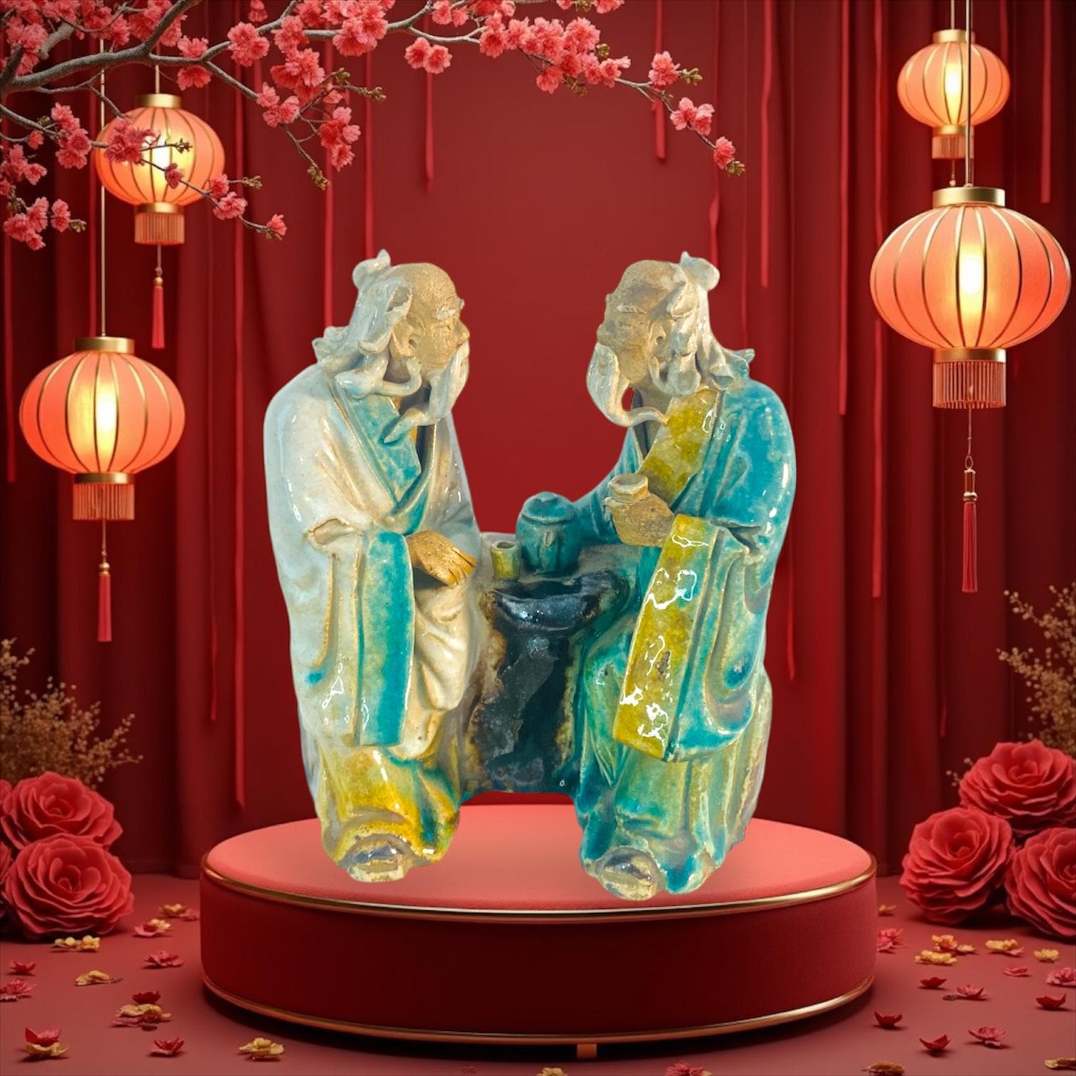 Depiction: Two elderly sages seated in conversation, sharing sake or tea—symbolizing wisdom, camaraderie, and ritual